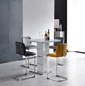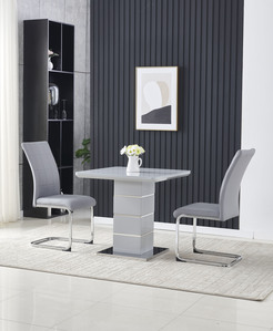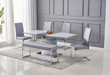 4' Set, 75 X120Cm Table With 4 Matching Light Grey Pu Chairs