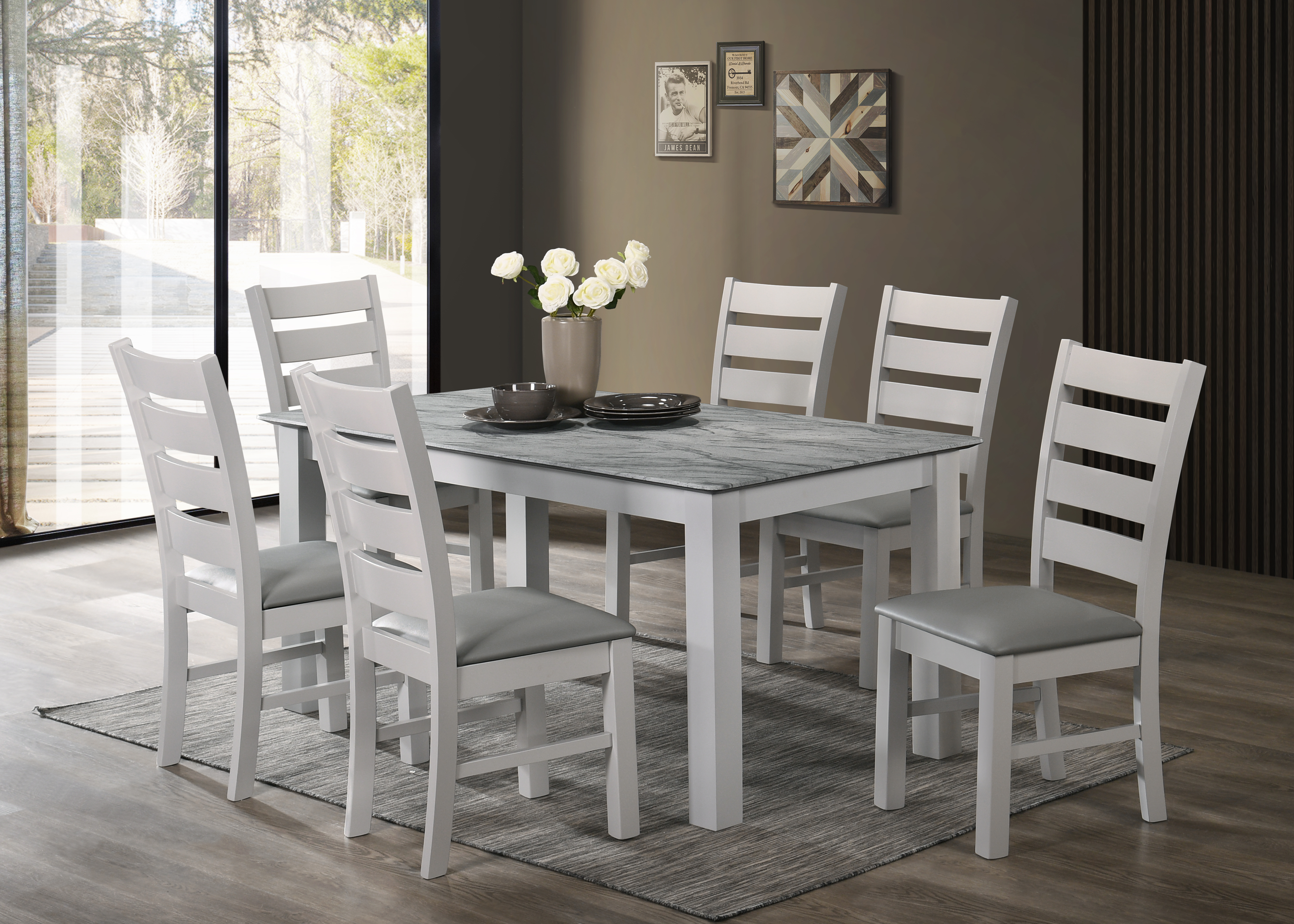 5' Set, 5' Marble Effect Smart Top Table With Grey Legs & 6 Grey Pu Seat Chairs