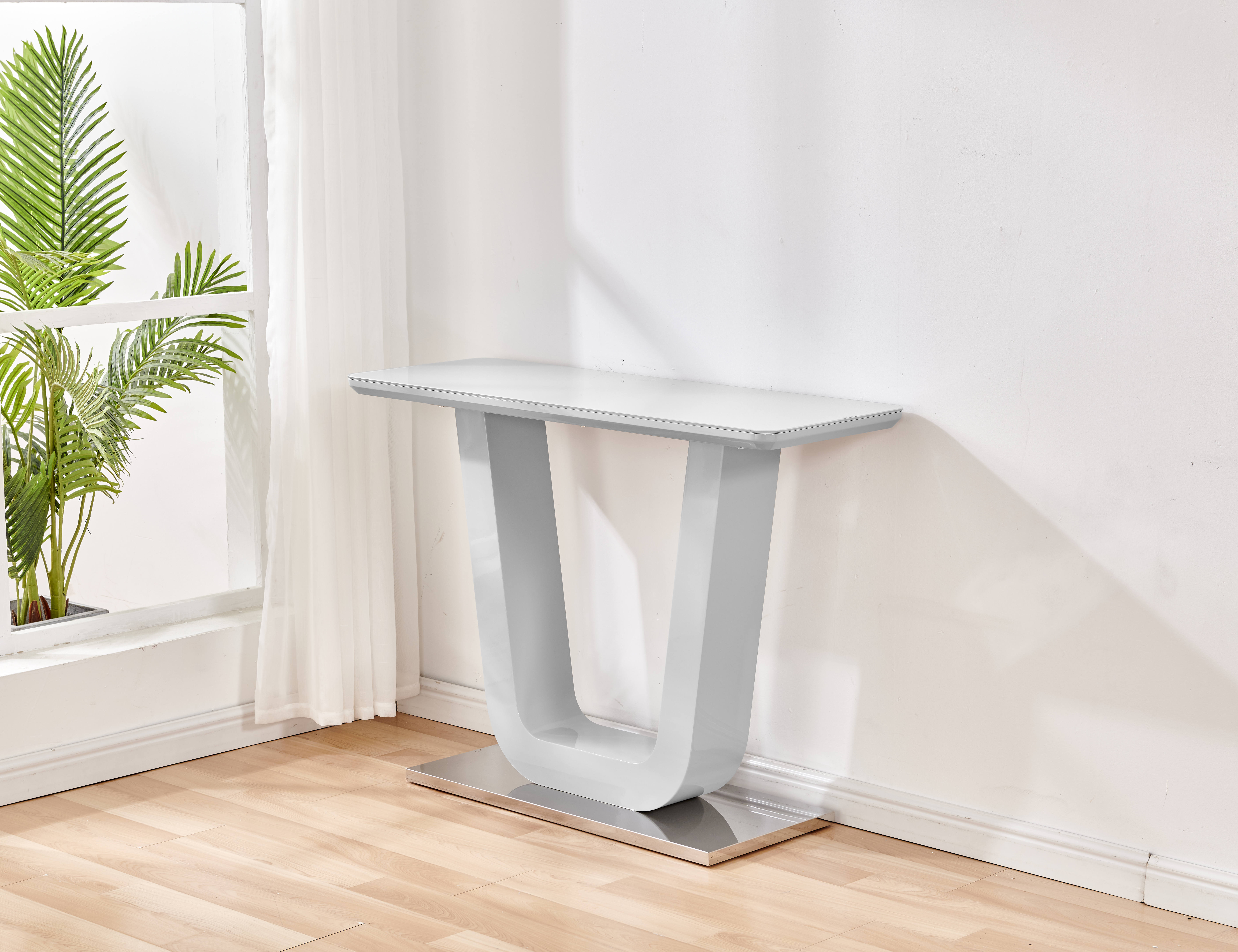 Light Grey Console Table With Glass Top, 110X40X80Cm